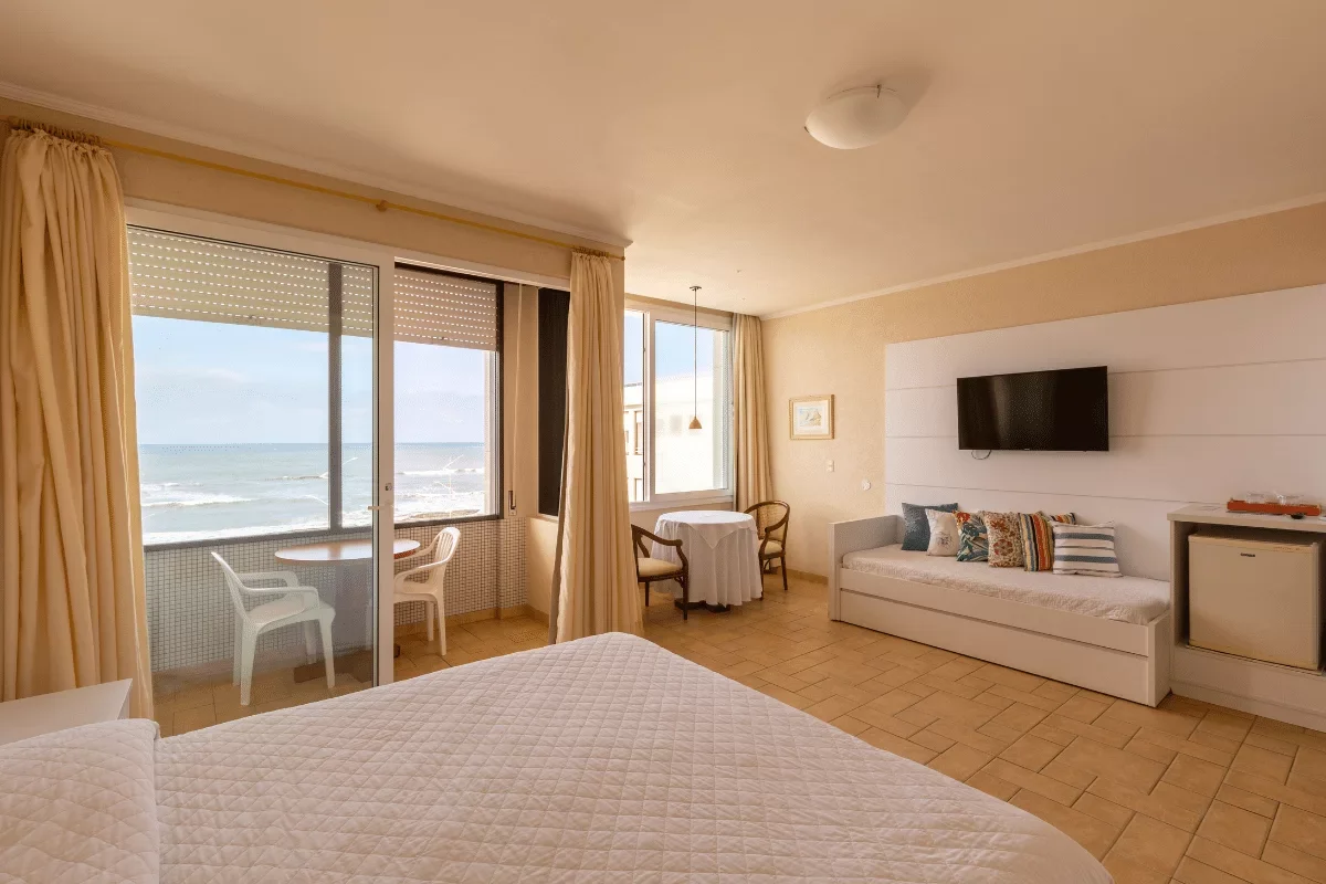 O máximo em conforto e sofisticação, com vista privilegiada para o mar. Nossa suíte oferece o ambiente perfeito para uma estadia inesquecível.